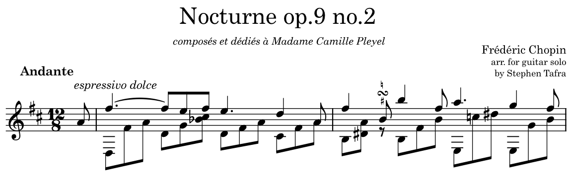 Nocturne op.9 no.2 by Frederic Chopin, for solo guitar. Buy here US$3.99